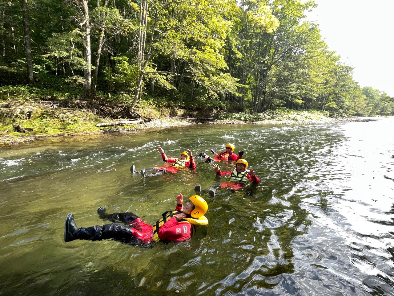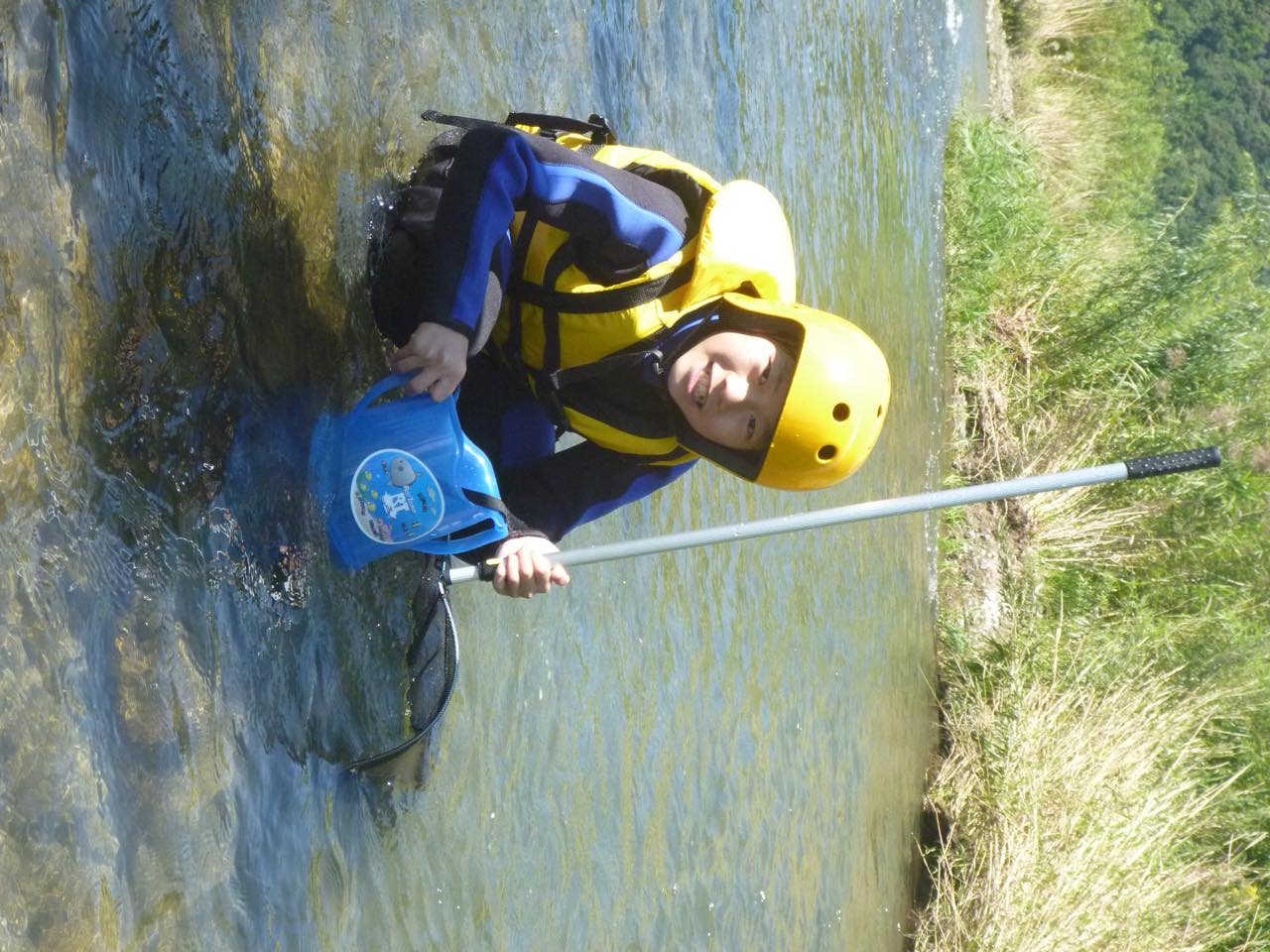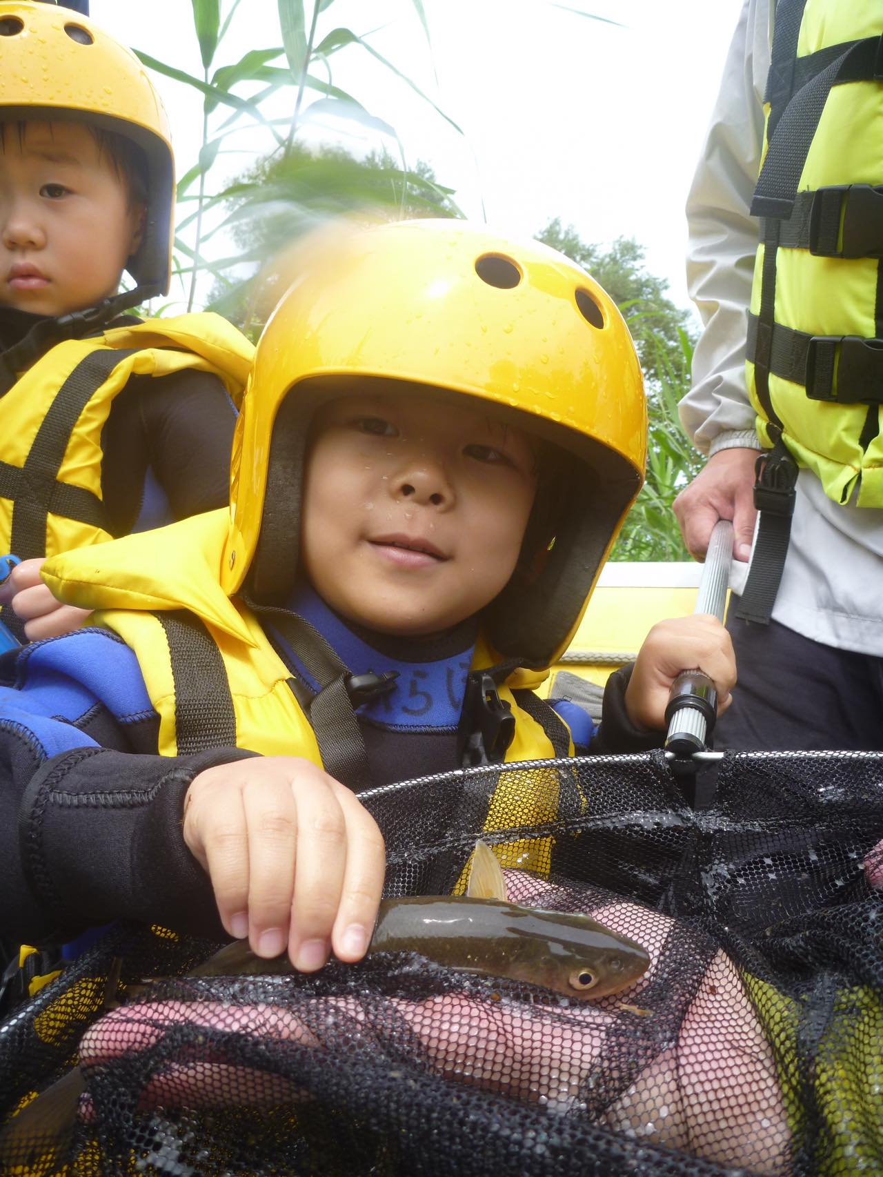 3歳のお子様から参加ができ、のんびりと川を流れたり 魚をすくってみたり、家族みんなで川遊びを体験できます。 |