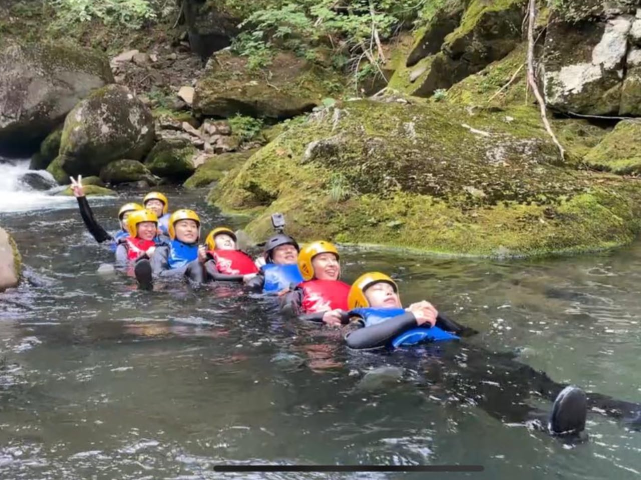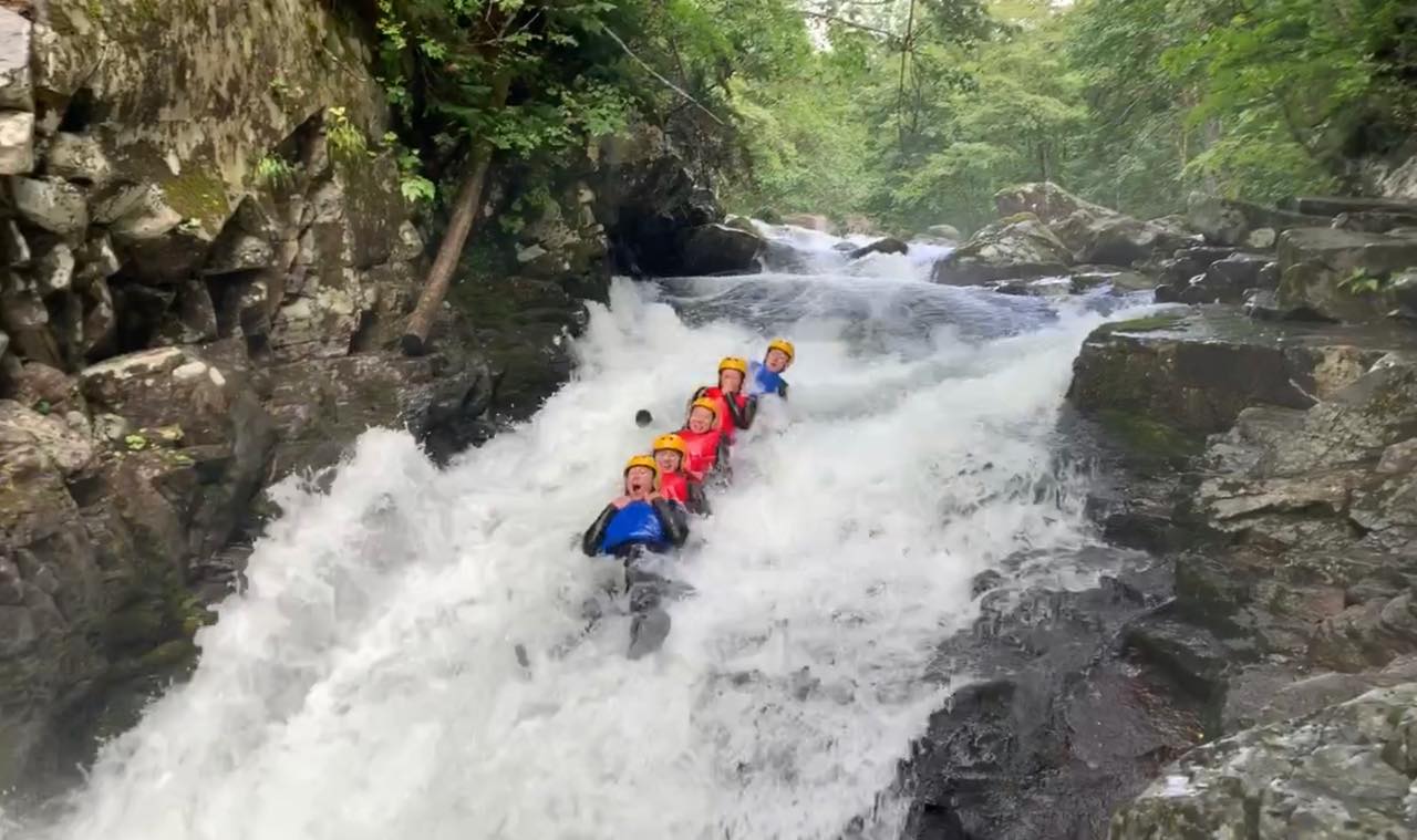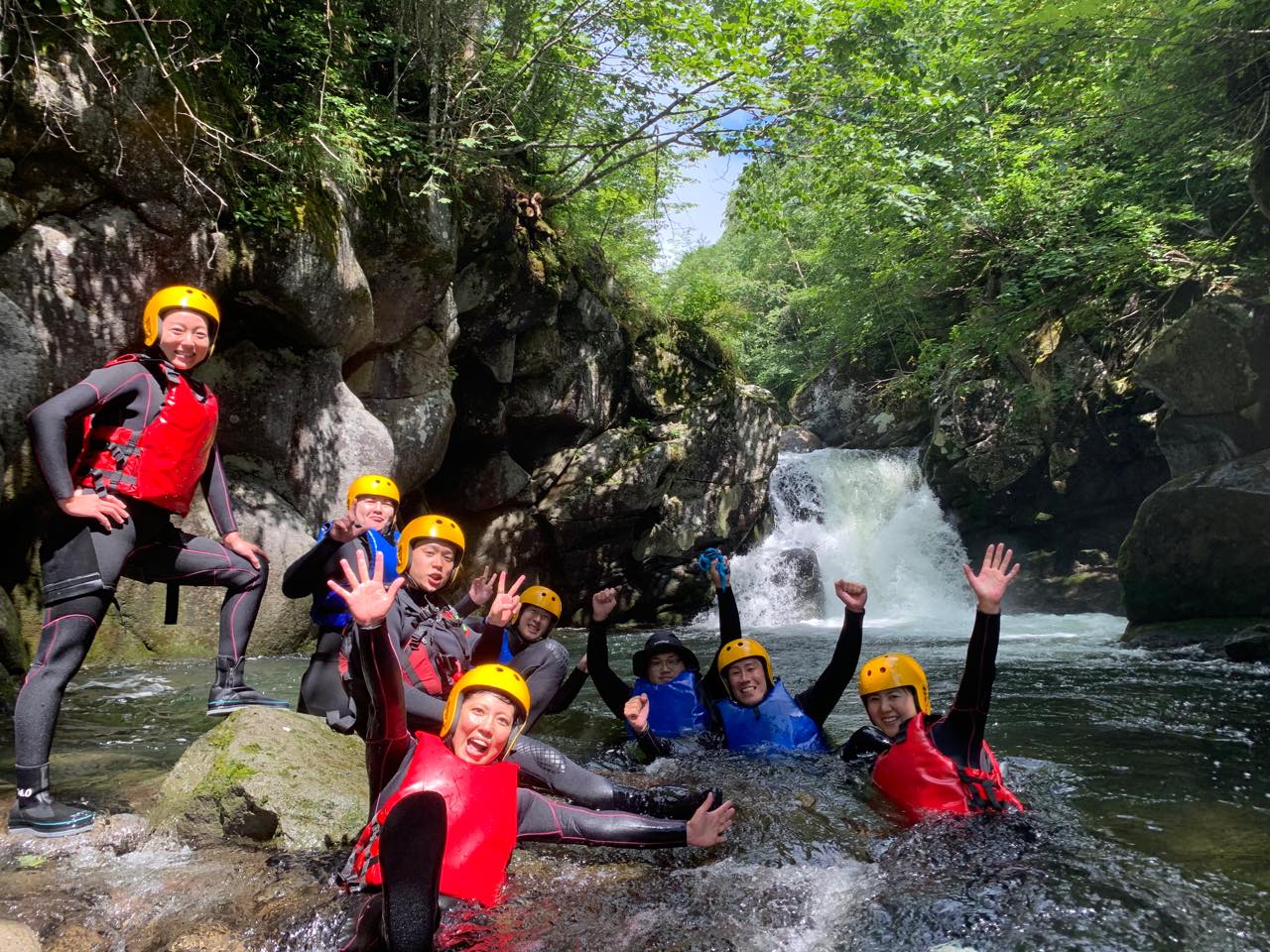 体ひとつで自然のウォータースライダーを滑ったり 滝つぼに飛び込んだり、大自然を満喫できます。 |