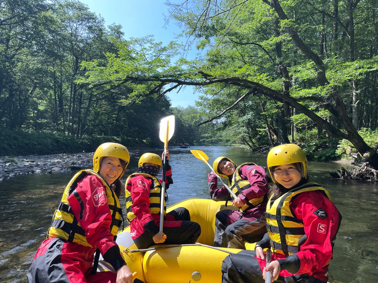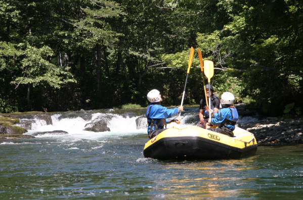 空知川上流部の澄み切った川でスリル満点のラフティング。 ワクワクドキドキみんなで楽しみましょう! |